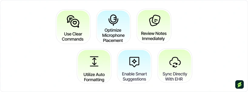 - Use Clear Commands: Speak in a structured manner and use trigger phrases like “Plan includes…” to improve note formatting